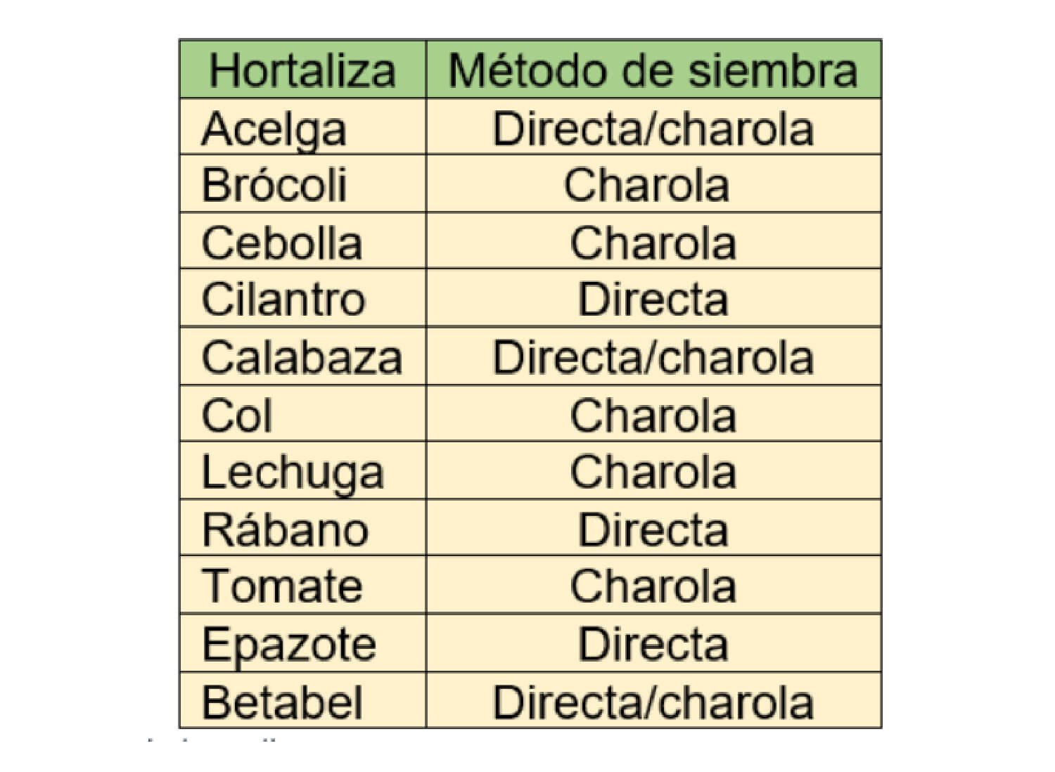 otras será necesario sembrar de manera directa, la siguiente tabla