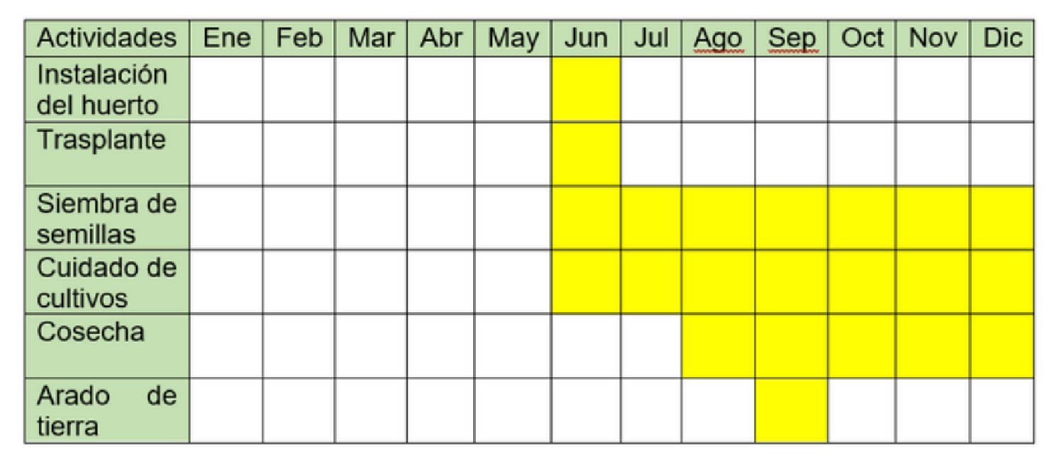 Para poder mantener un huerto, es ideal llevar una calendarización con